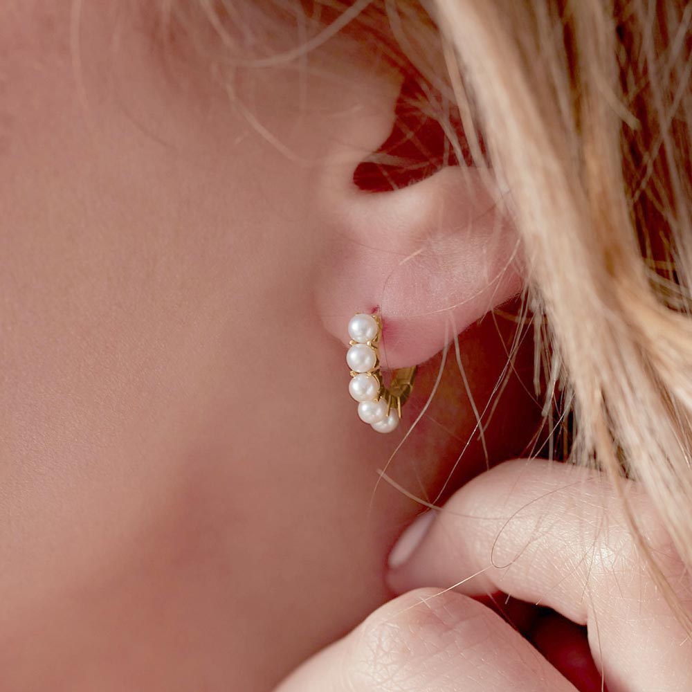 Celeste Sterling Silver Graduated Pearl Hoop Earrings