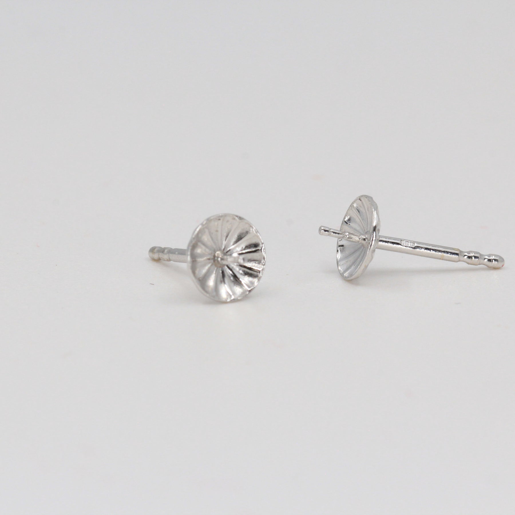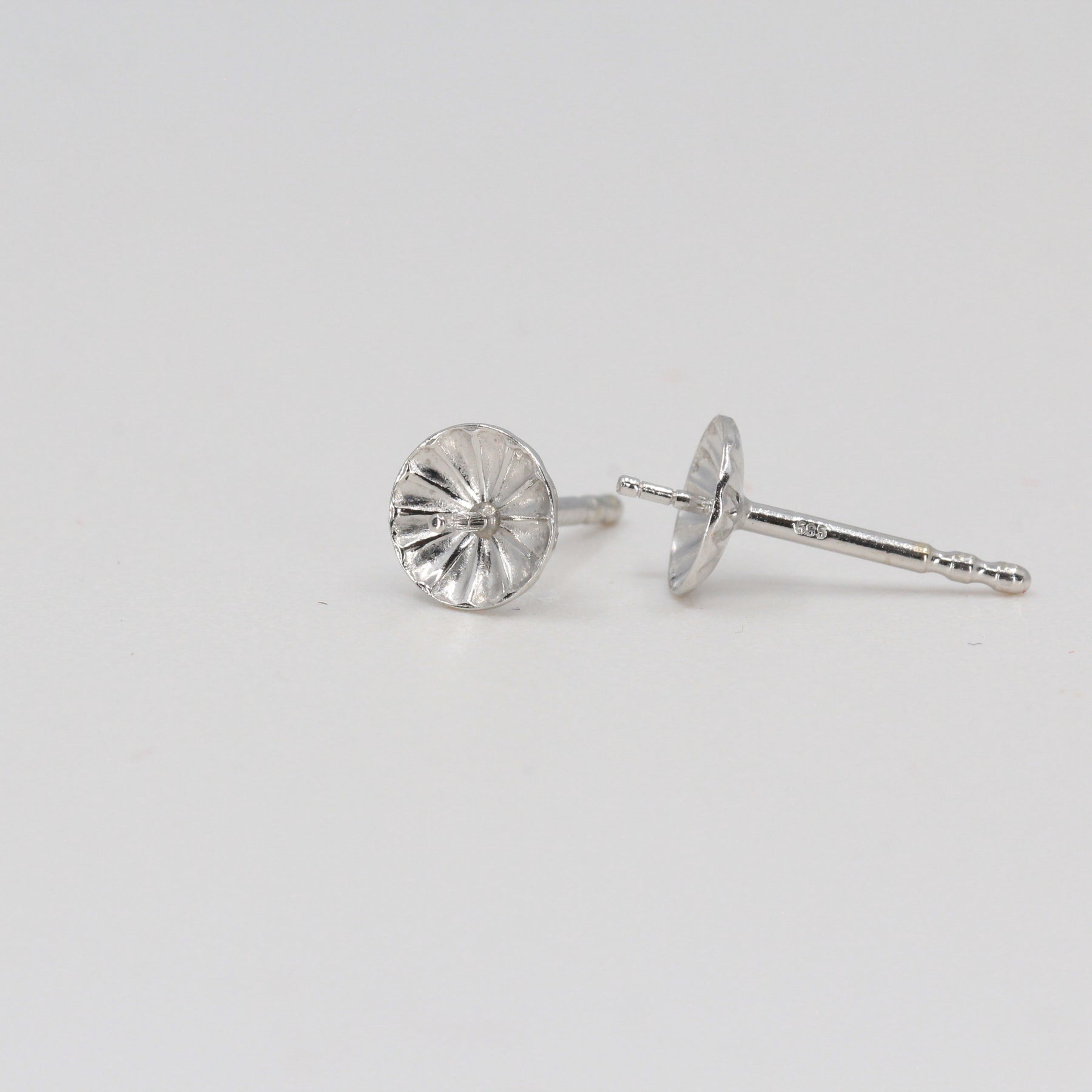 A Pair double notched pearl earring mounting with pad and peg is manufactured for use by industry jewelry professionals and hobbyists.