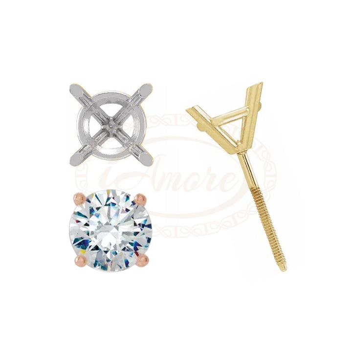 Round 4 Prong Cocktail Stud Threaded Studs Earring Mounting