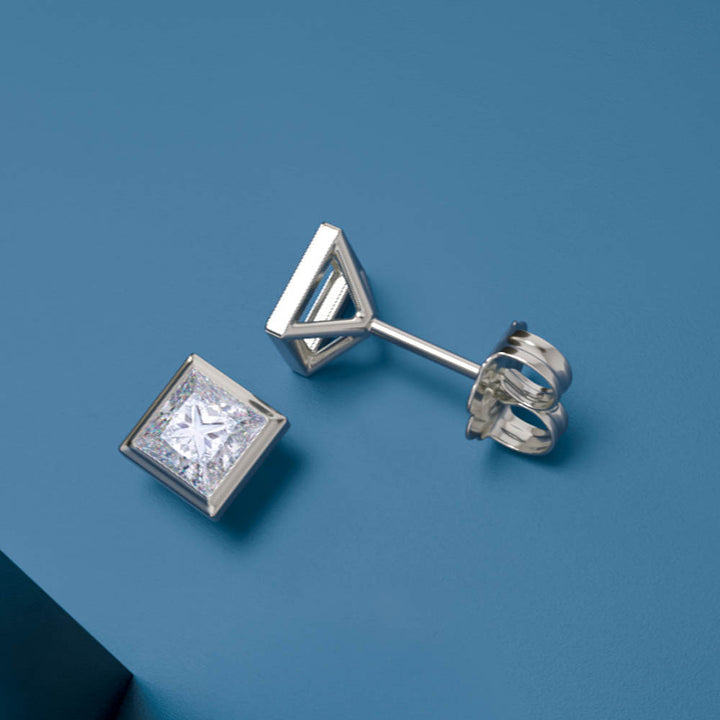 Square bezel martini cocktail stud earring settings are precisely crafted with metal mold for a finer finish.